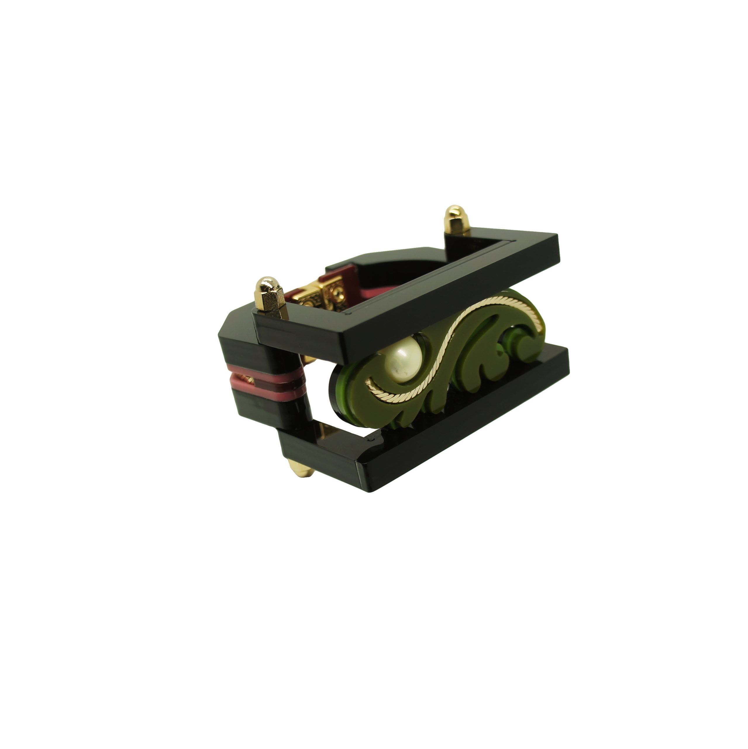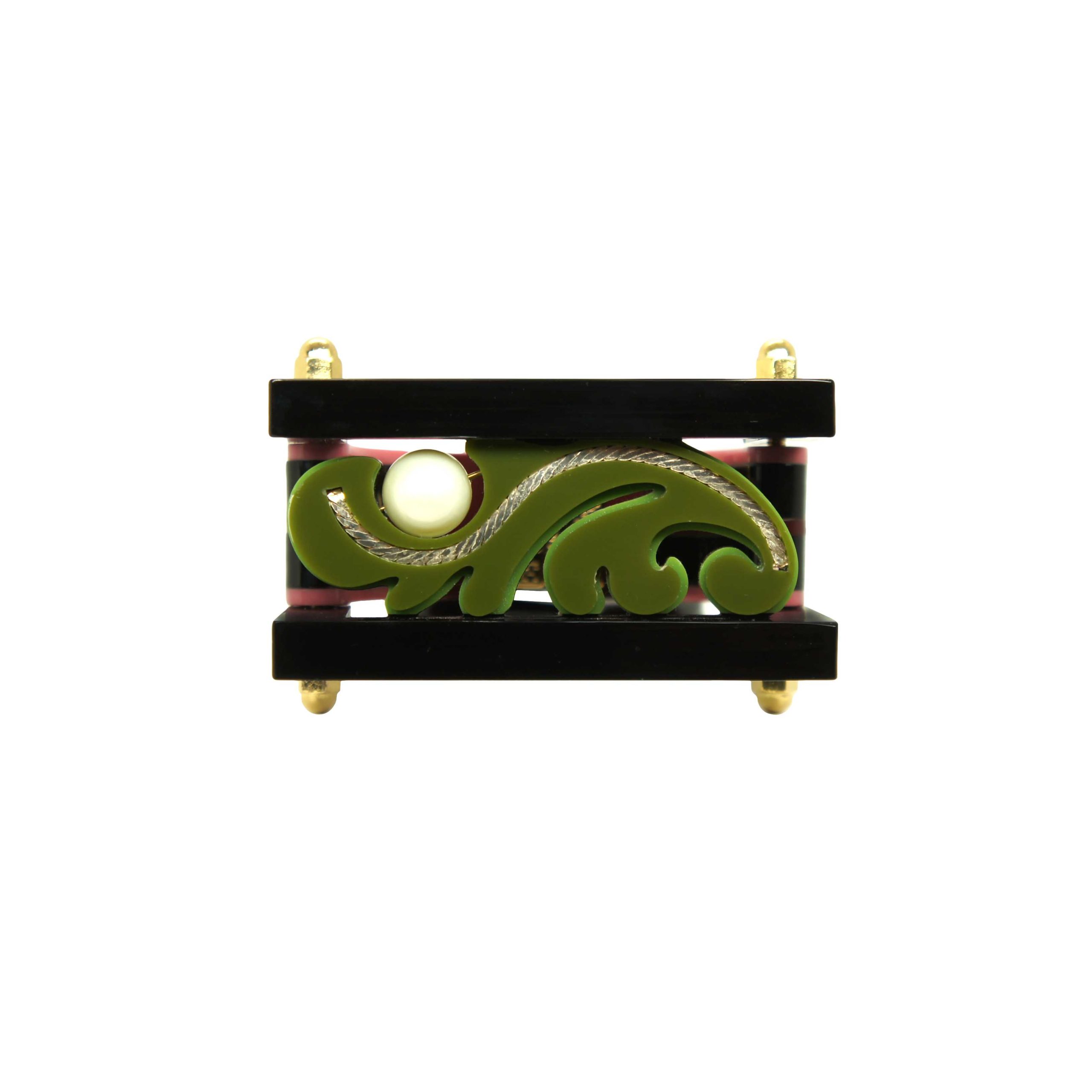 Bracelete feito de acrílico, com conta de pérola shell, com aplicação de corrente, fechamento com fecho imã, metais com acabamento dourado. Disponível nos tamanhos PP, P, M e G (consultar medidas). Feito a mão por artesãos brasileiros.