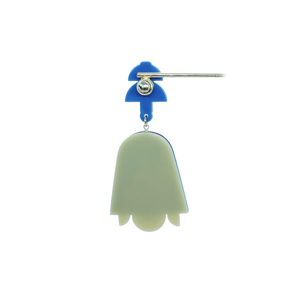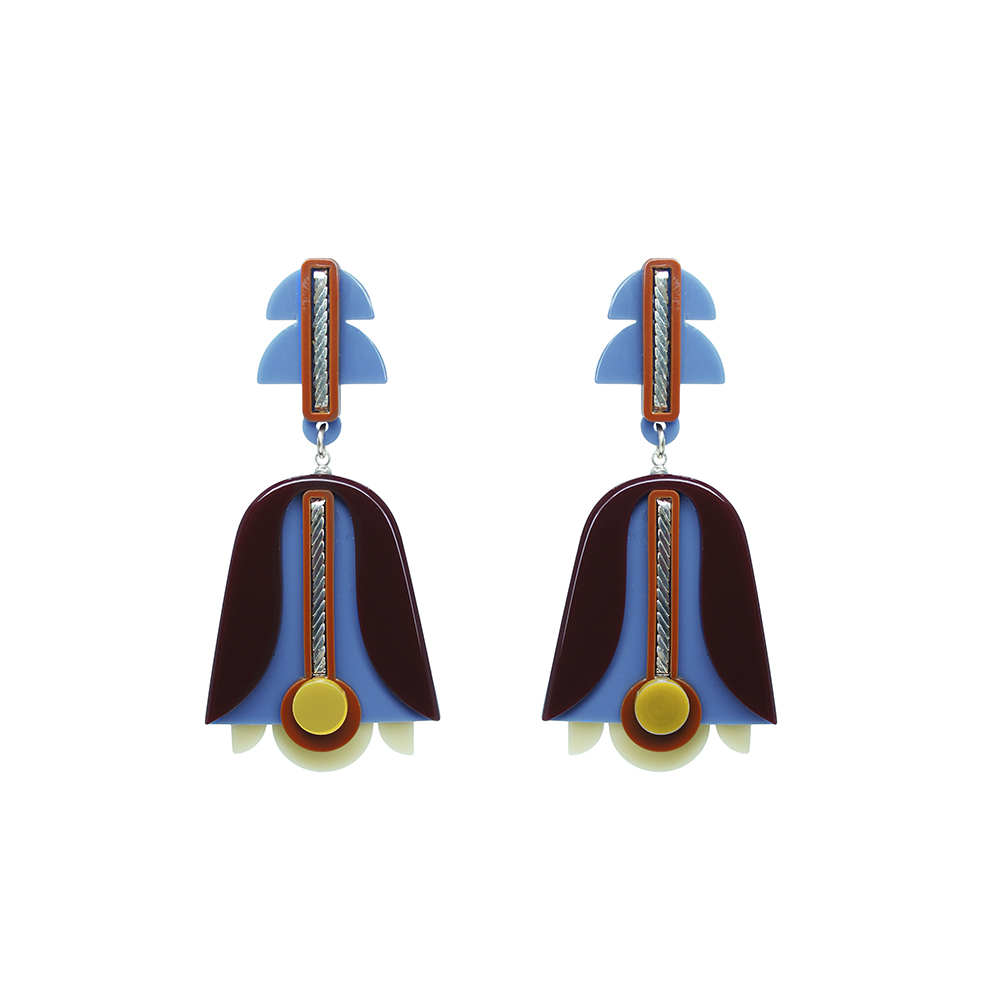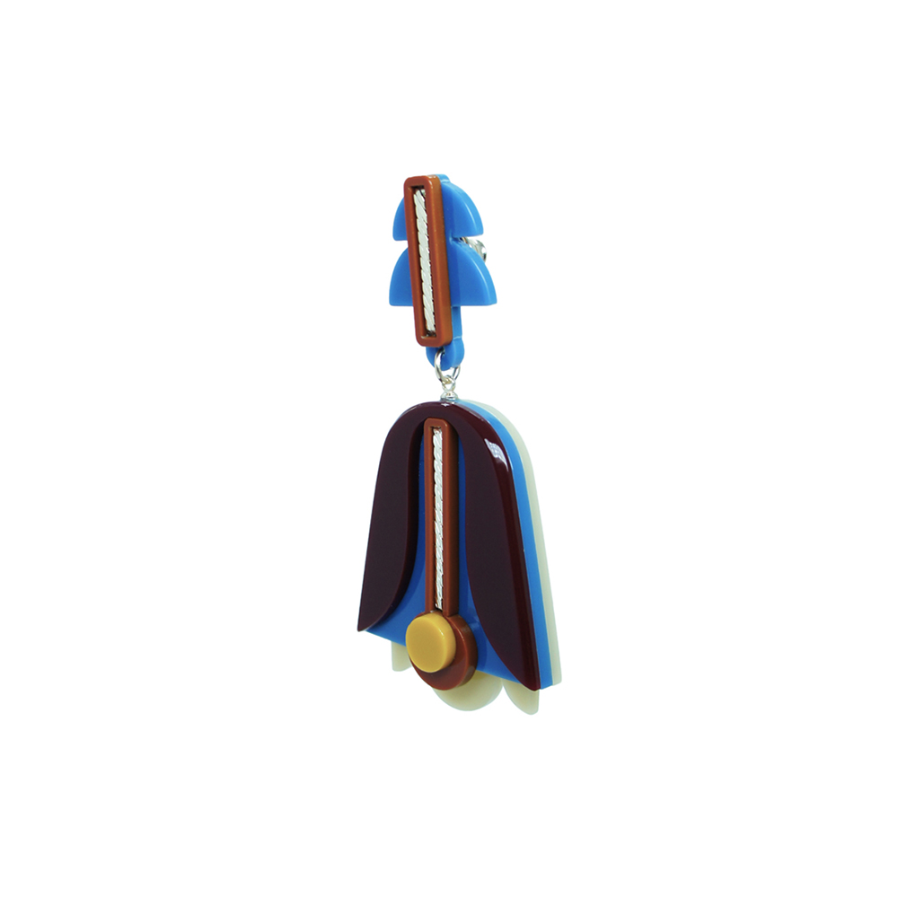 Brinco de acrílico feito à mão, articulado, com corrente, de metais com acabamento dourado.