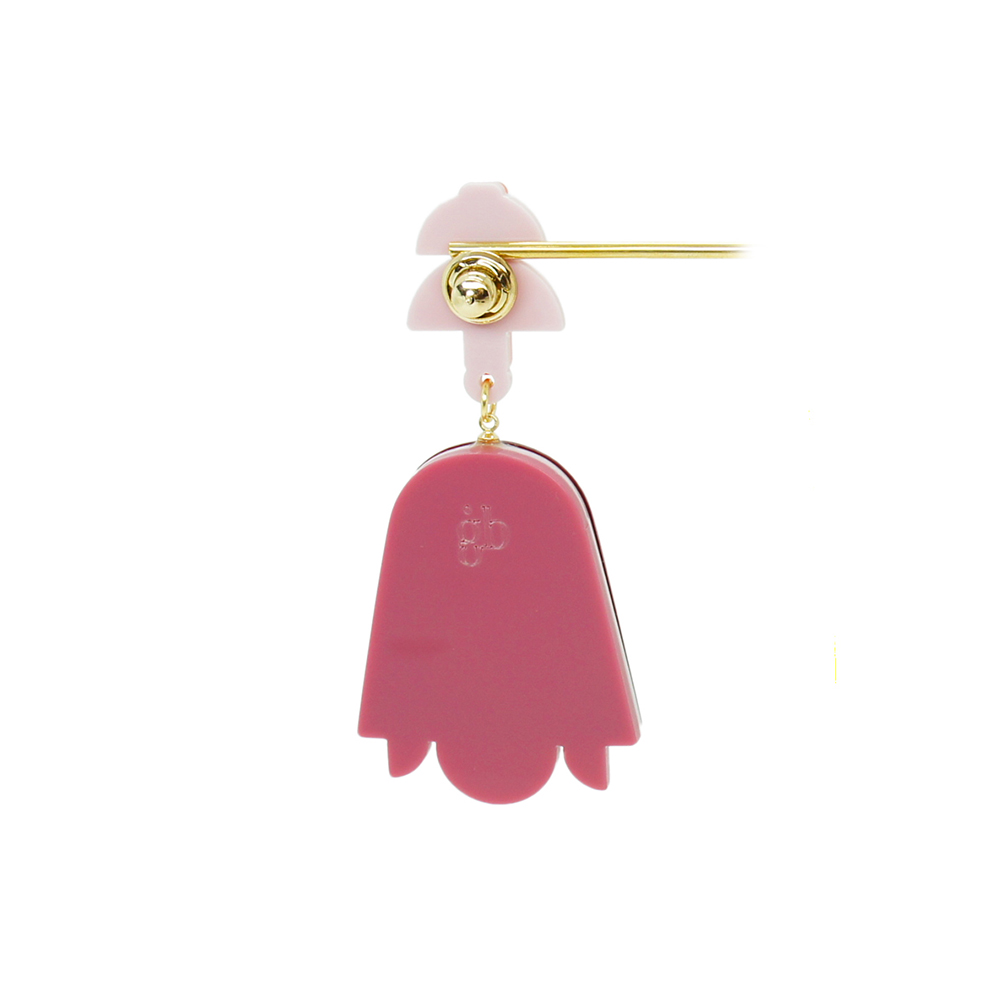 Brinco de acrílico feito à mão, articulado, com corrente, de metais com acabamento dourado.