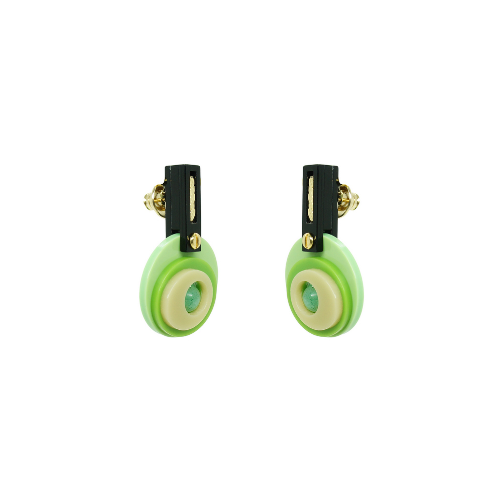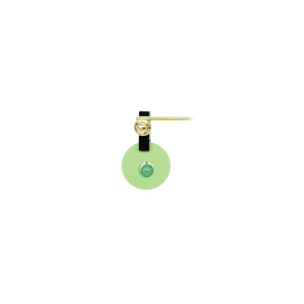 Brinco de acrílico, feito à mão, tamanho curto, com conta ABS e metais com acabamento dourado.