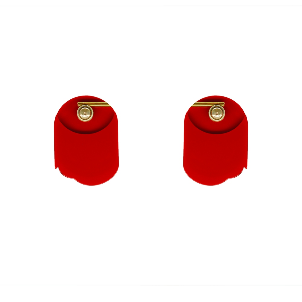 Brinco de acrílico, modelo curto, com metais com acabamento dourado. Feito à mão por artesãos brasileiros.