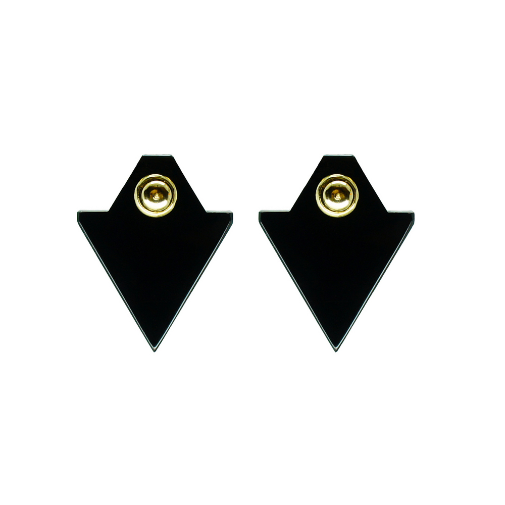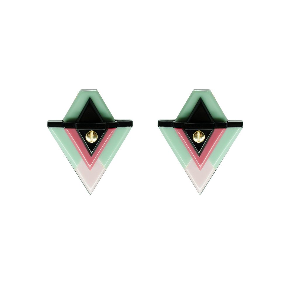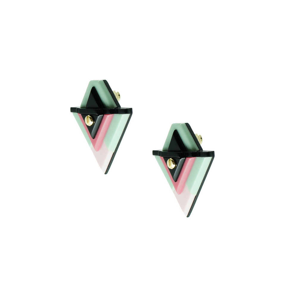 Brinco curto de acrílico, com metais com acabamento dourado. Feito a mão por artesãos brasileiros.