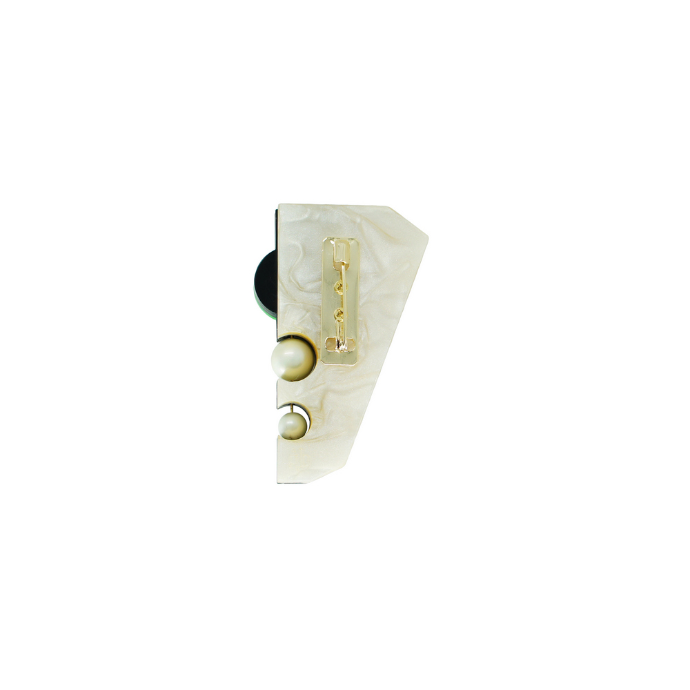 Broche de acrílico, com alfinete de fixação, com strass de vidro, pérola shell, aplicação de detalhe em metal dourado, metais com acabamento dourado. Feito a mão por artesãos brasileiros.