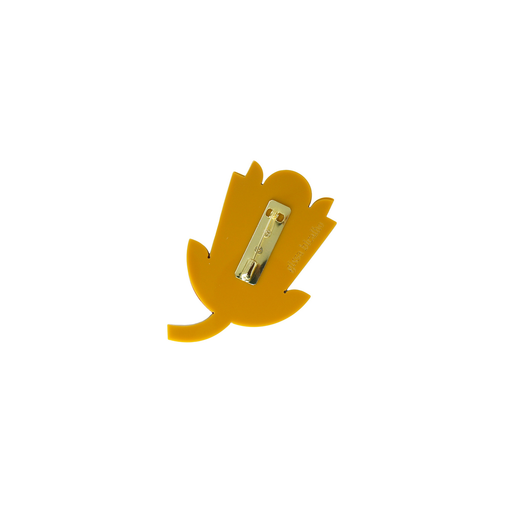 Broche artesanal em acrílico nos tons kahki e terrosos. O modelo possui metais com acabamento dourado. Seu design estilizado e combinação de cores vibrantes tornam a escolha perfeita para seu estilo casual e moderno!