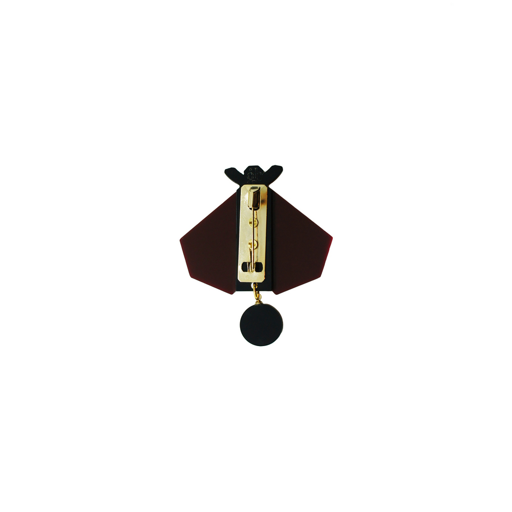 Broche de acrílico, com alfinete de fixação, aplicação de pedra de vidro, strass de vidro, aplicação de detalhe em metal dourado, metais com acabamento dourado. Feito a mão por artesãos brasileiros.
