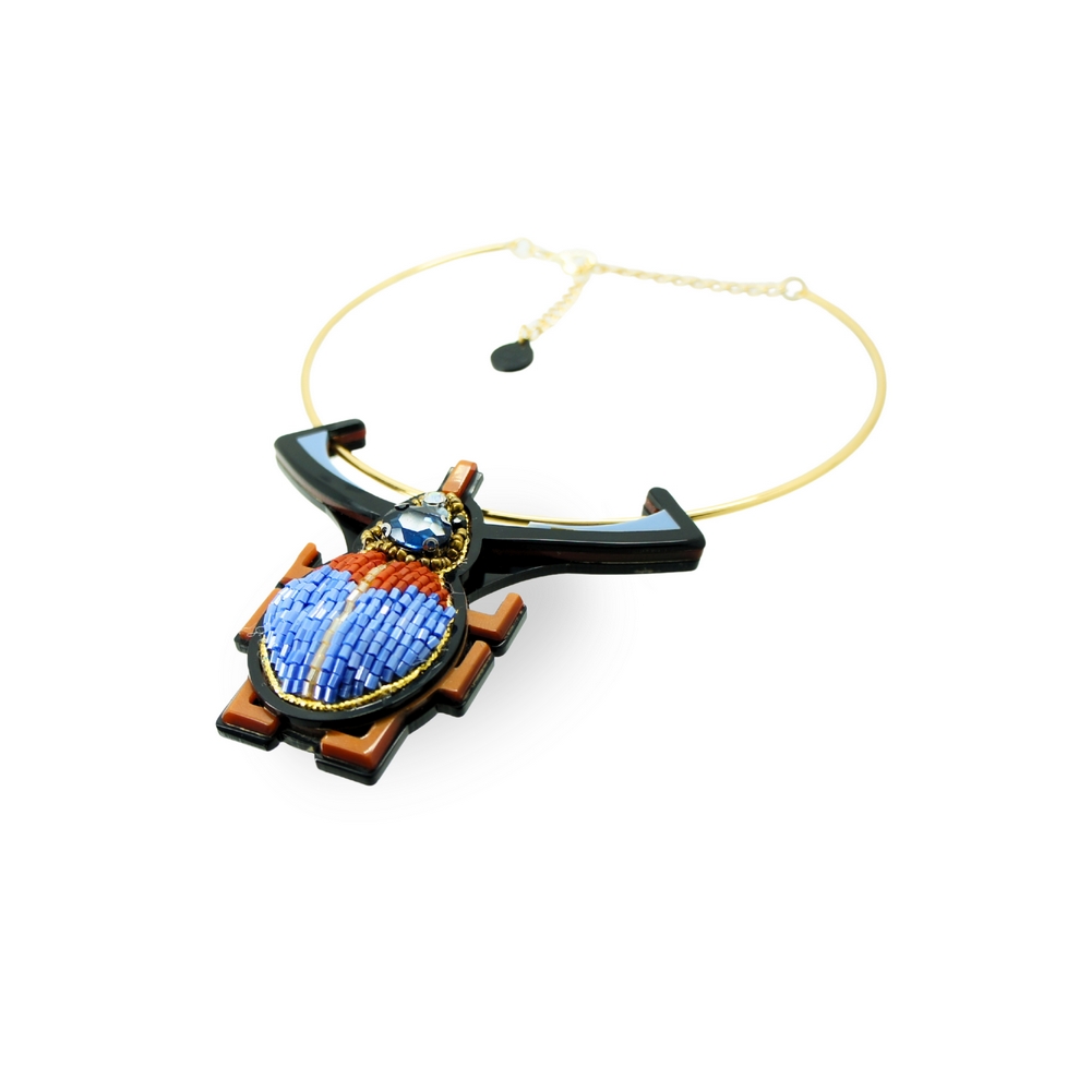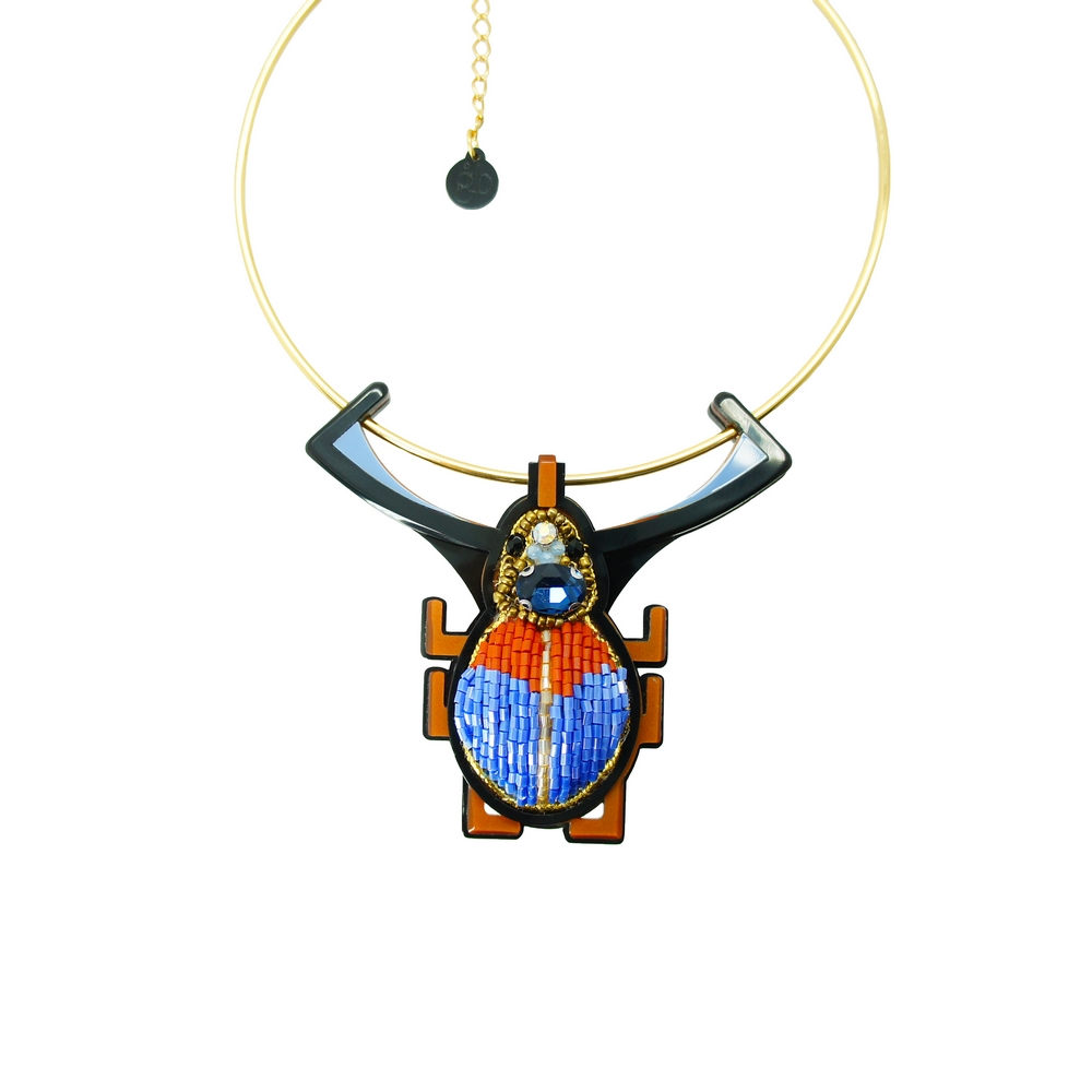 Colar feito de acrílico, com aro de metal, com bordado feito com miçangas, vitrilho e cristal de vidro. Metais com acabamento dourado. Colar com corrente extenssora para melhor ajuste. Feito a mão por artesãos brasileiros.