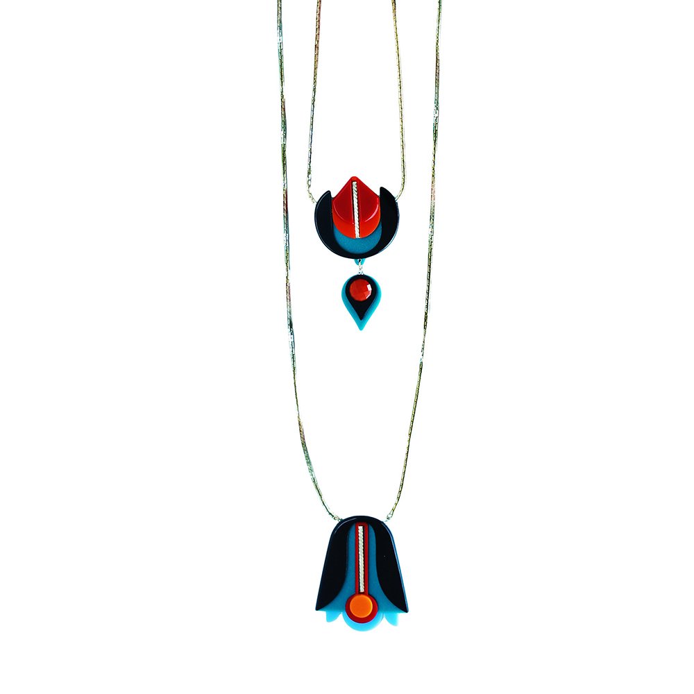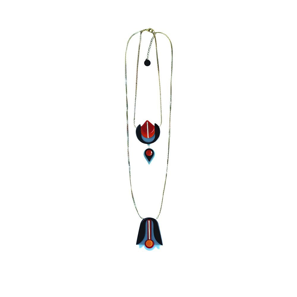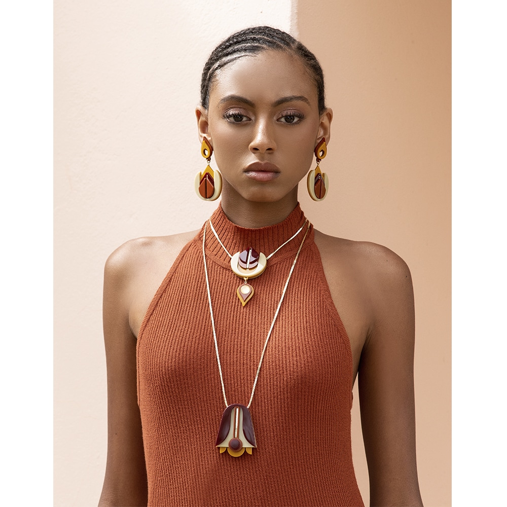 Colar de acrílico feito à mão, kit composto por dois colares um longo e outro curto, com pedra de vidro, metais com acabamento dourado.