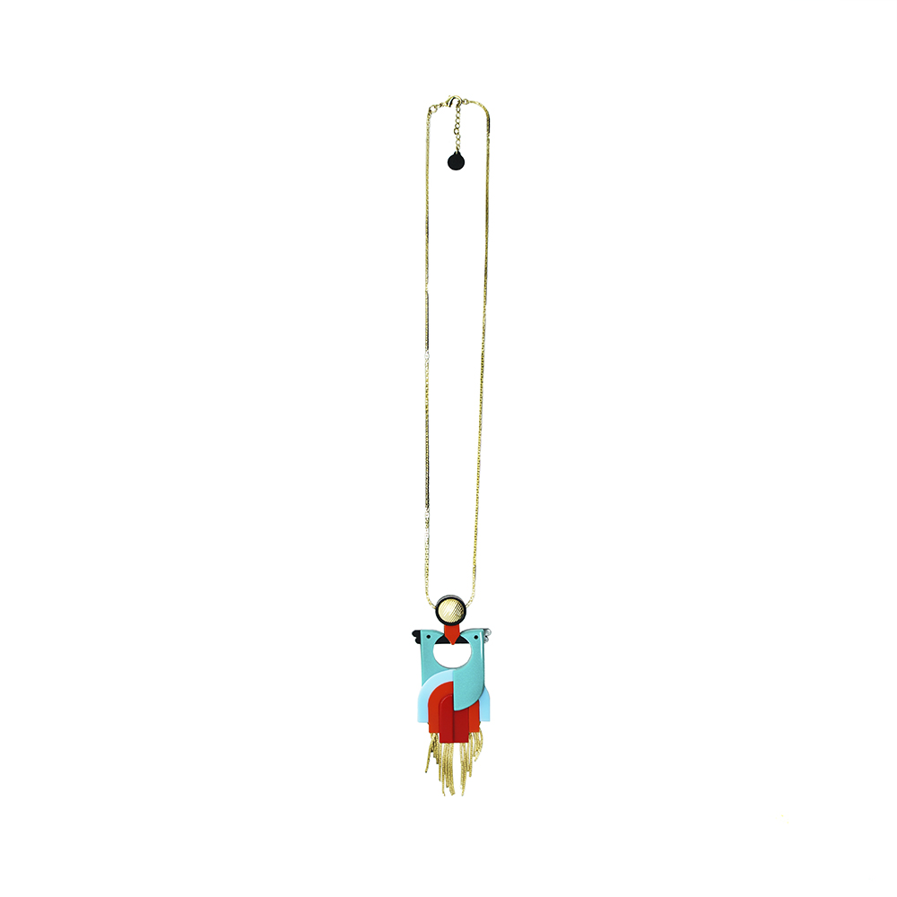 Colar de acrílico feito à mão, com franja em corrente, metais com acabamento dourado.